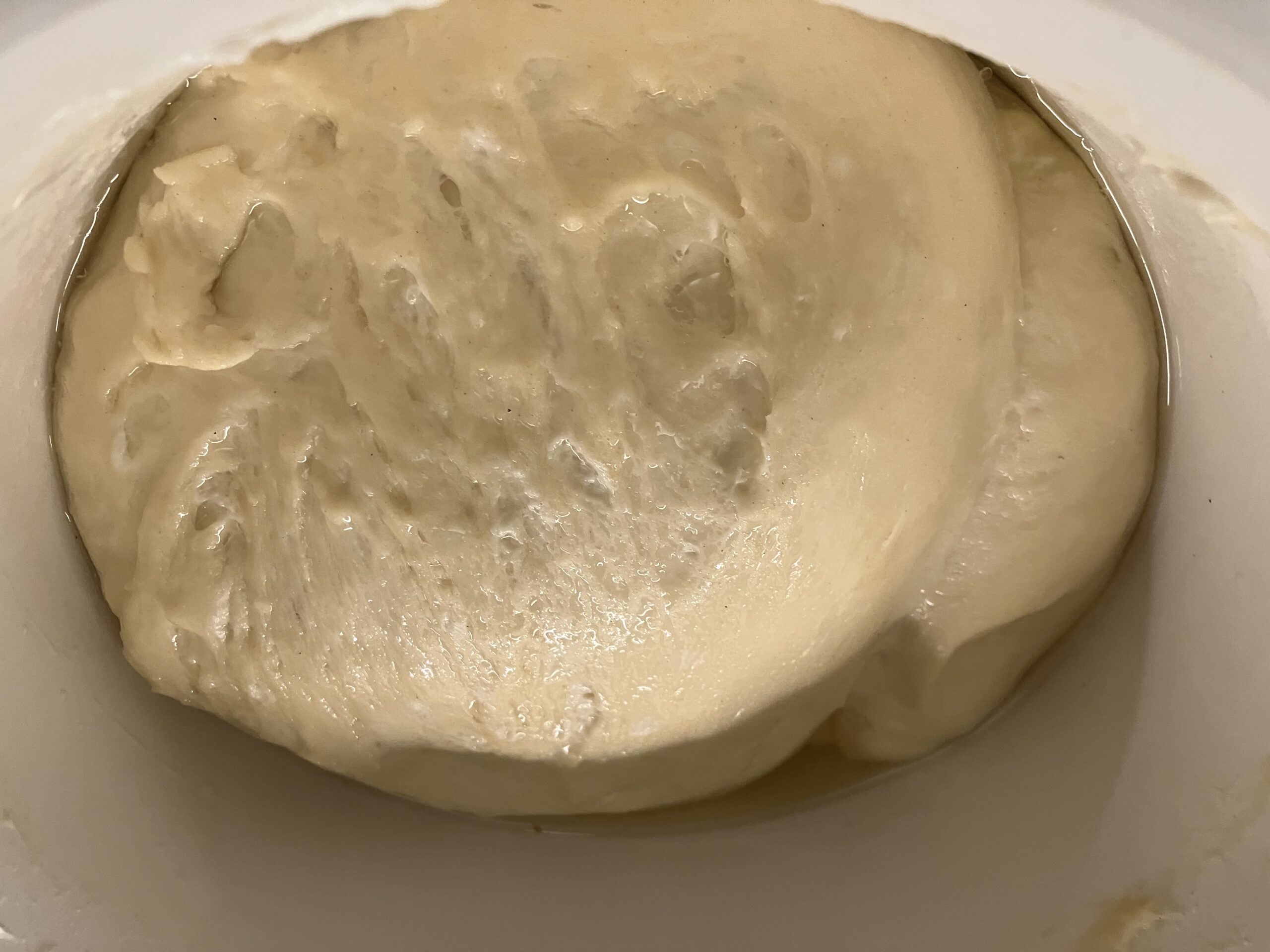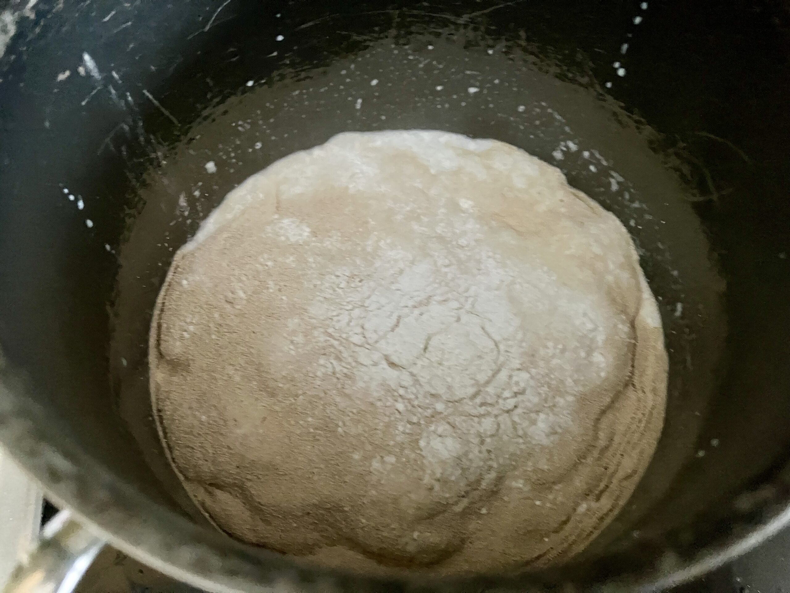 Teig mindestens eine Stunde, gerne auch zwei Stunden gehenlassen. Die Teigmenge soll sich mindestens verdoppelt haben.