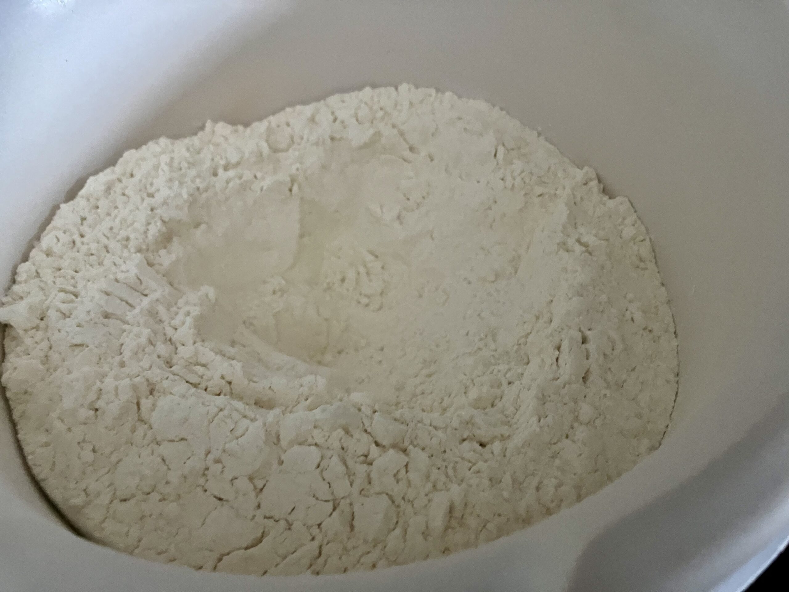 In der Zeit Mehl abwiegen und eine Rührschüssel geben
