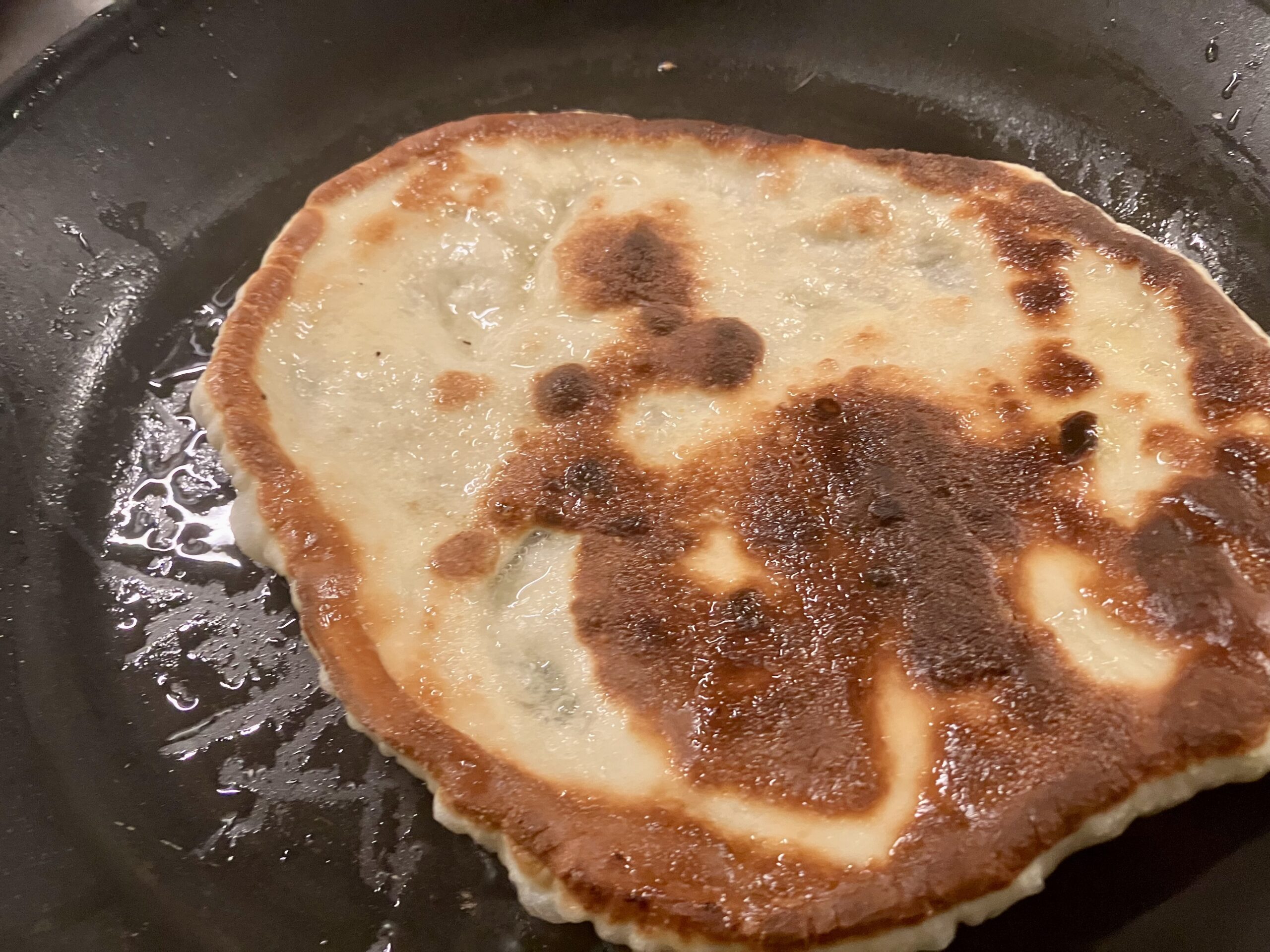 Wenden wenn der Teig Blasen schlägt. Das dauert zwischen einer Minute und 90 Sekunden