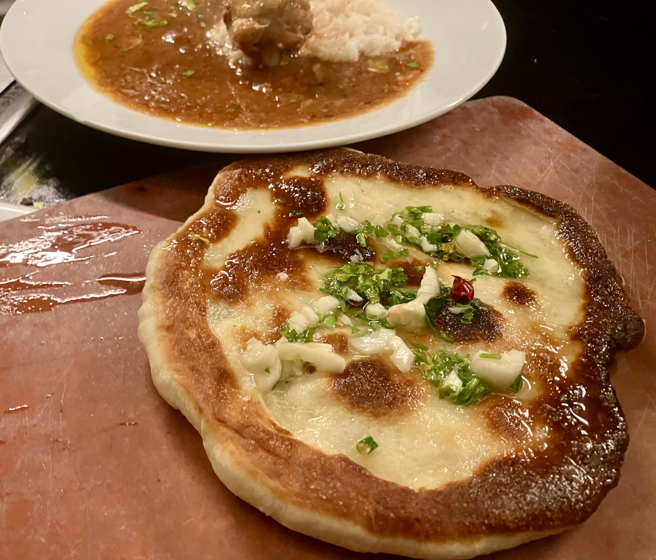 Wer mag kann sich von dem Knoblauchöl auf das Naan (Brot) geben