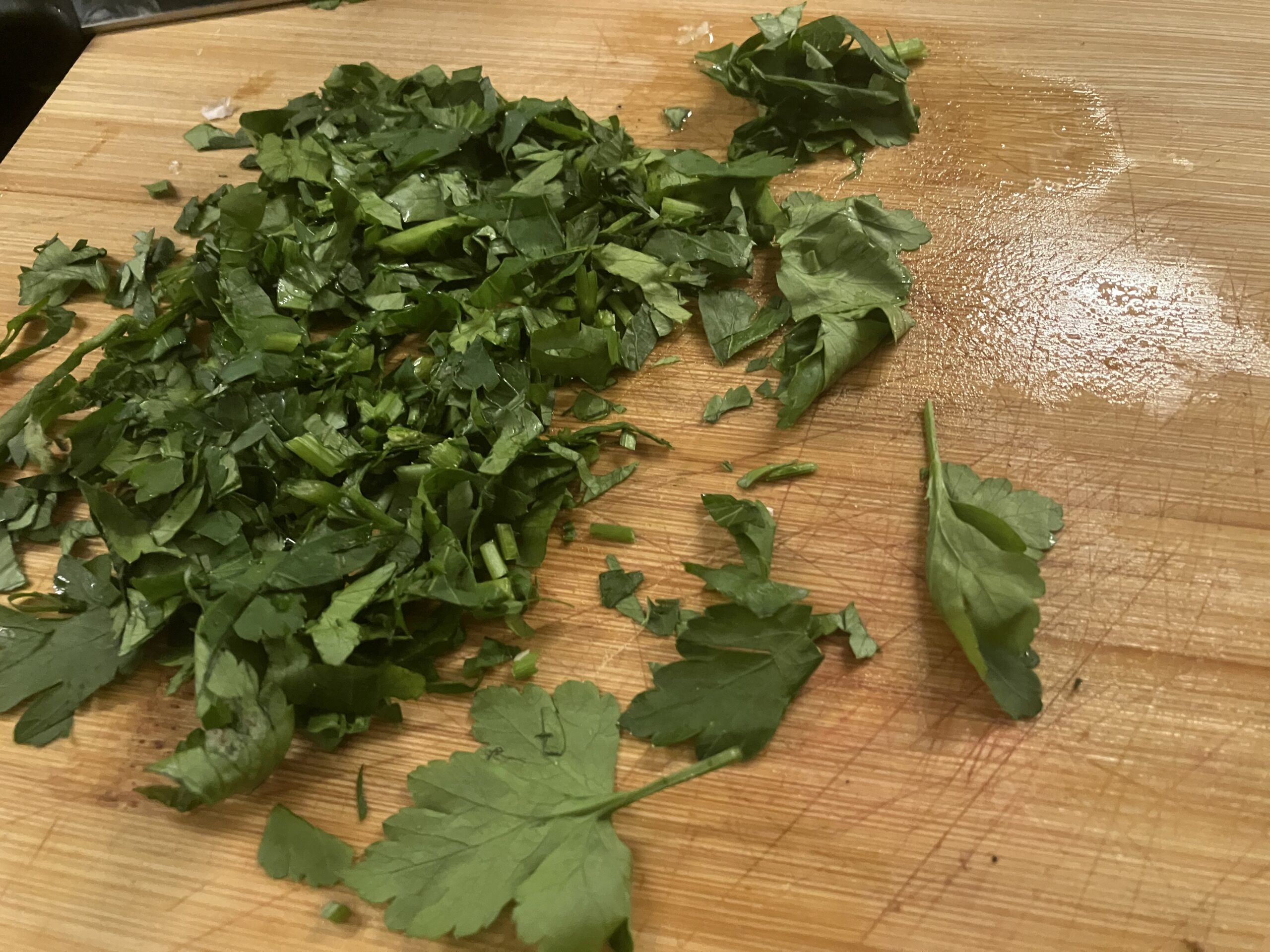 Petersilie einstreuen. Hartgesottene Seifengeschmackmöger können auch frischen Koriander einstreuen.
