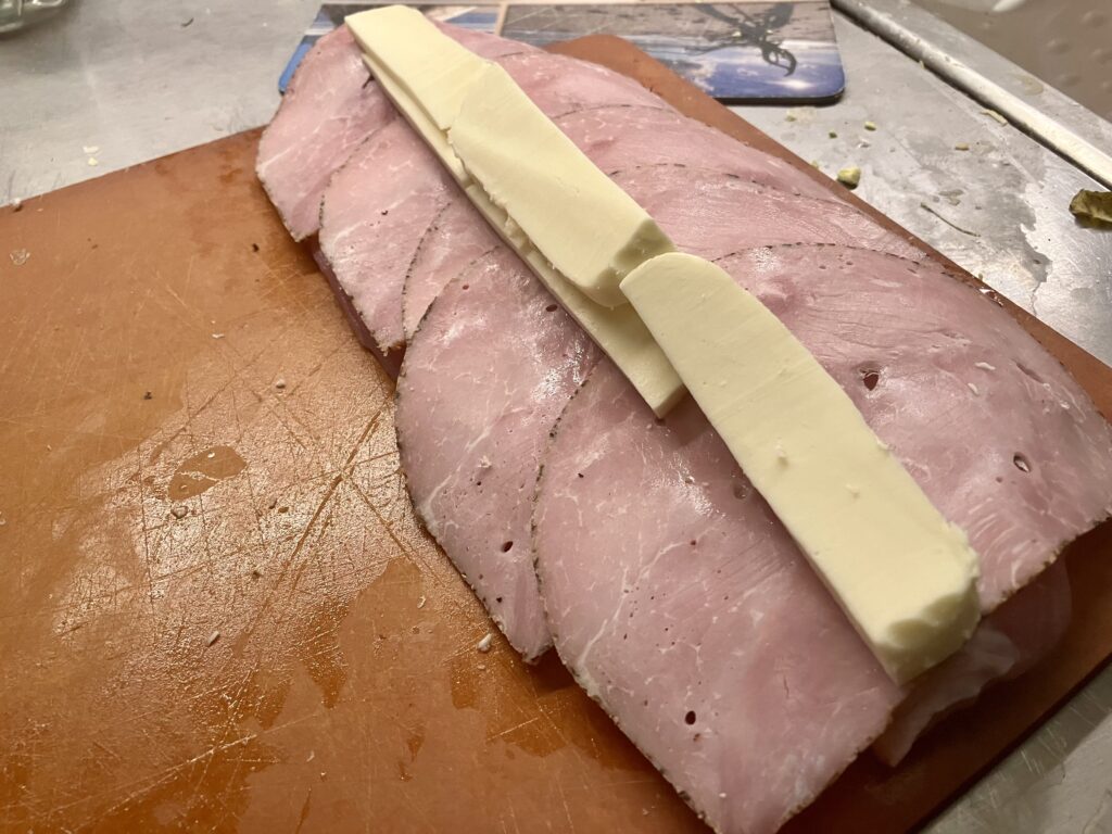 Zum SIchern, damit es nicht wieder aufklappt, nehme ich einen langen Schaschlikspieß. Zwei Rouladennadeln gehen auch.