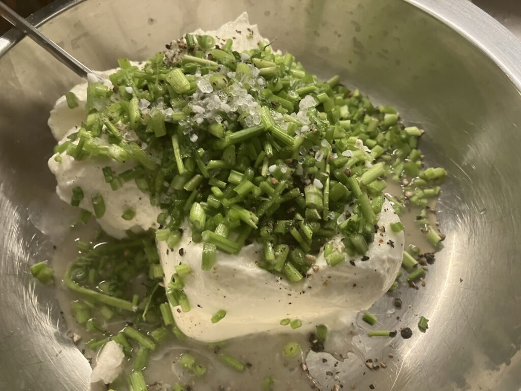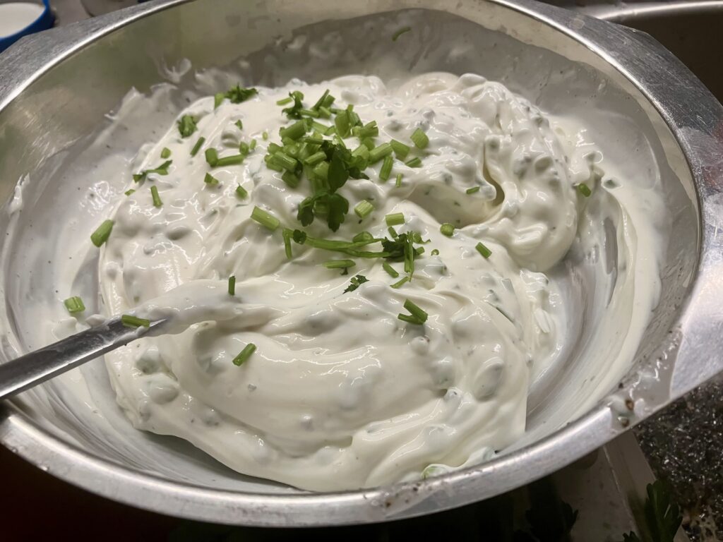 Petersilie zum Quark geben und Pfeffer aus der Mühle