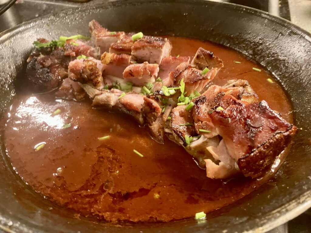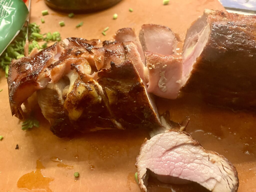 Ein sensationelles Stück Schwein, wenn ich bedenke, dass man bei meiner Mutter und meiner Oma, die Fleischfaser von vorne bis hinten durchziehen konnte. Hier ist sie dezent medium und alles sehr zart.