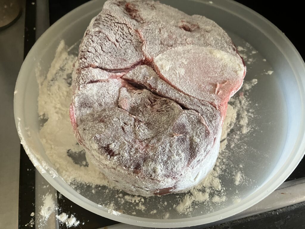 Fleisch von beiden Seiten bemehlen