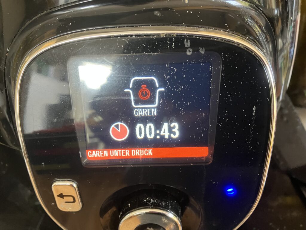 Jetzt ist die Kochzeit rum und der Druck wird automatisch abgelassen
