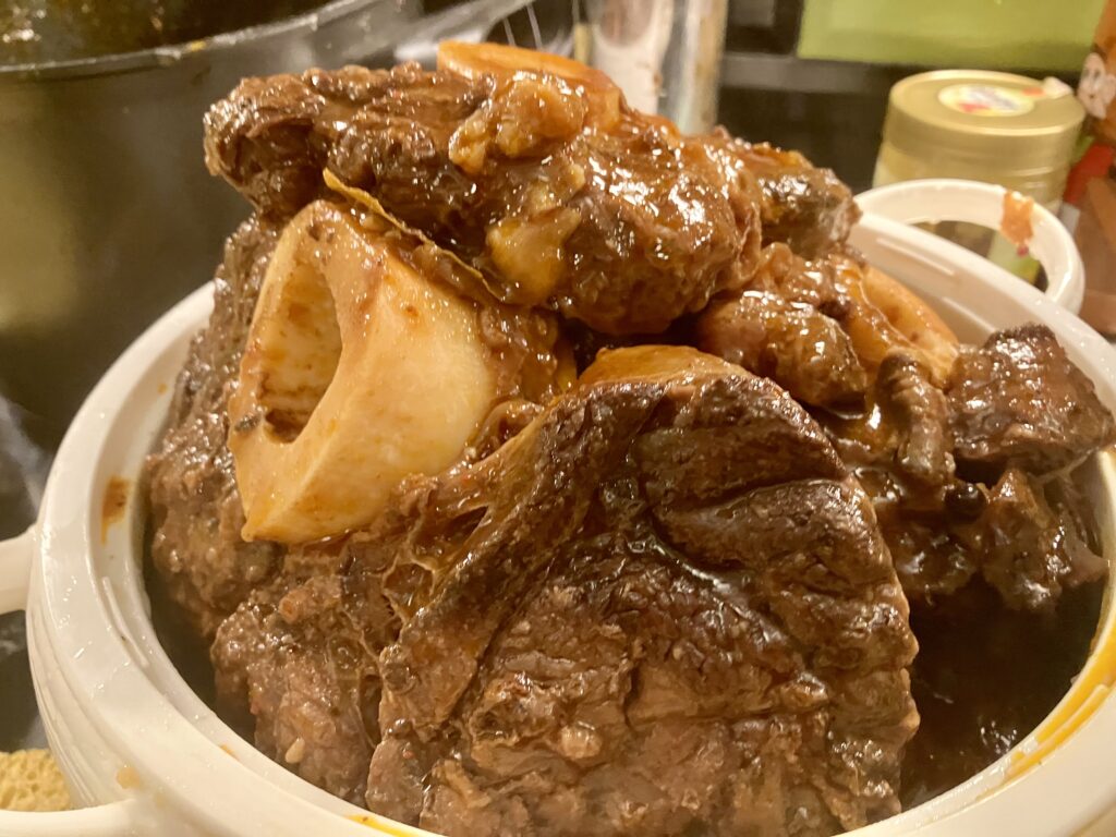 Bei mir landet heute noch was im Slowcooker. Beim Discounter mit dem “L” habe ich kürzlich Rind aus den USA gefunden, ein Stück das sich “Chuck” nennt, offenbar Nacken. Das ist als Steak gelabelt, lässt sich aber besser schmoren. Hatte schonmal ein Stück, leider nur 400 g, gekauft und geschmort. Ein zarteres und saftigeres Fleisch hatte ich ewig nicht am Teller. Ich mache noch etwas Gremolata drauf, aber darum brauchst du dir keine Gedanken zu machen.