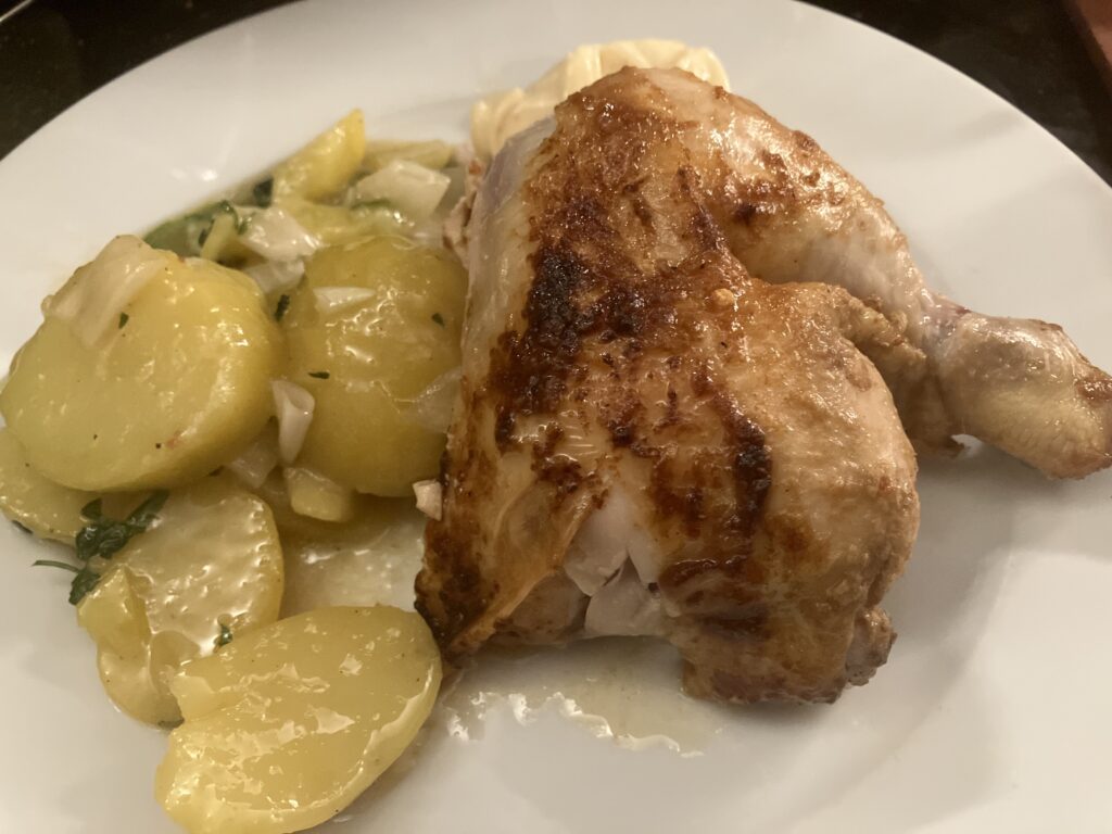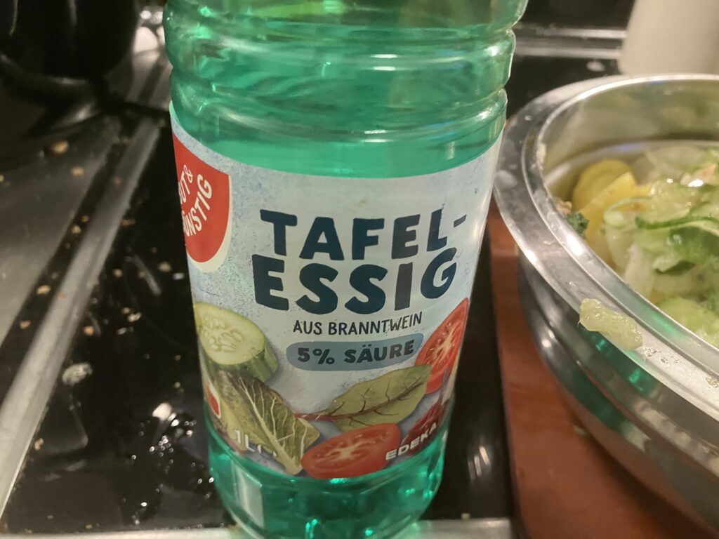 Aber unser Besuch war sehr, sehr begeistert insbesondere auch von den Kartoffelsalat. Den kannte sie nur mit Mayonnaise aus dem Supermarkt.