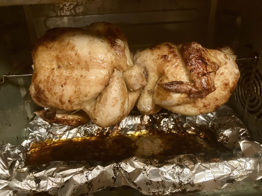 Die Hähnchen kommen nach 90 Minuten aus dem Ofen