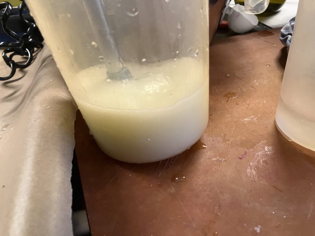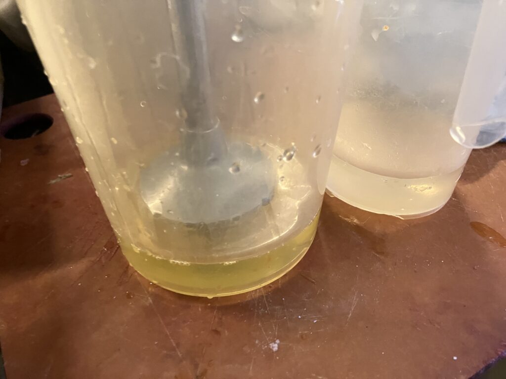 Hier kann man sehen wie der Zucker wieder flüssig wird.