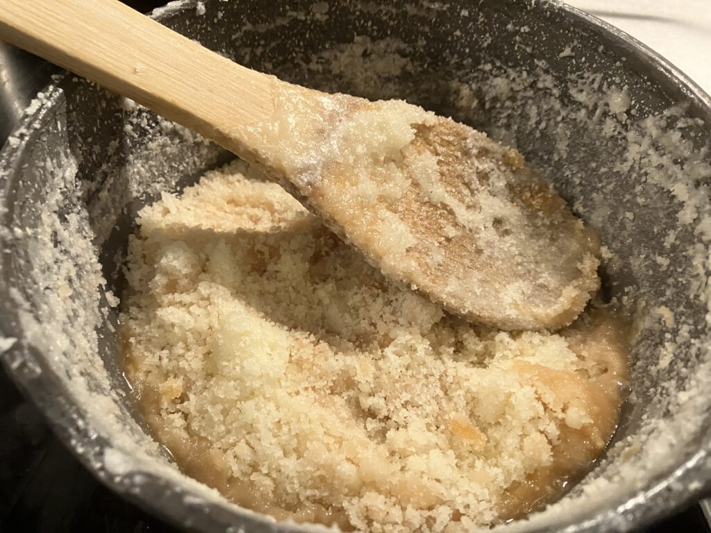 Dann wird der Zucker brösig und fängt an zu bräunen