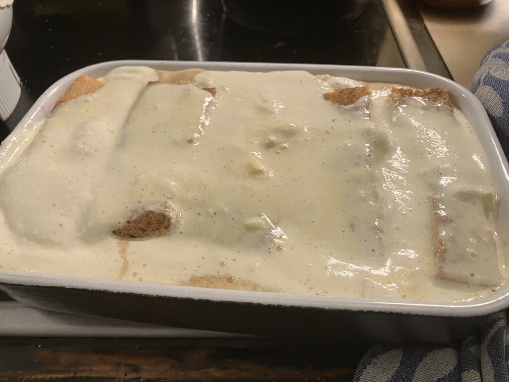 Danke für Deine Rückmeldung. Ich habe Espresso und Amaretto verdoppelt und das Ganze in einer großen Auflaufform geschichtet.