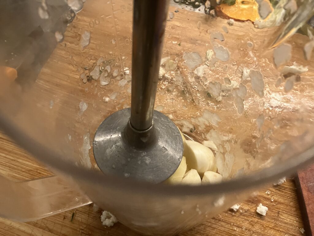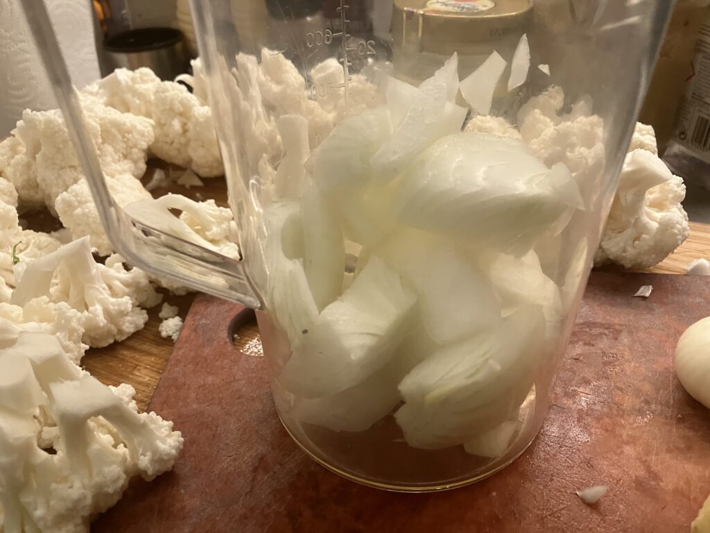 Mit dem Esge Zauberstab, oder einem Pürierstab schnell die Zwiebel schreddern