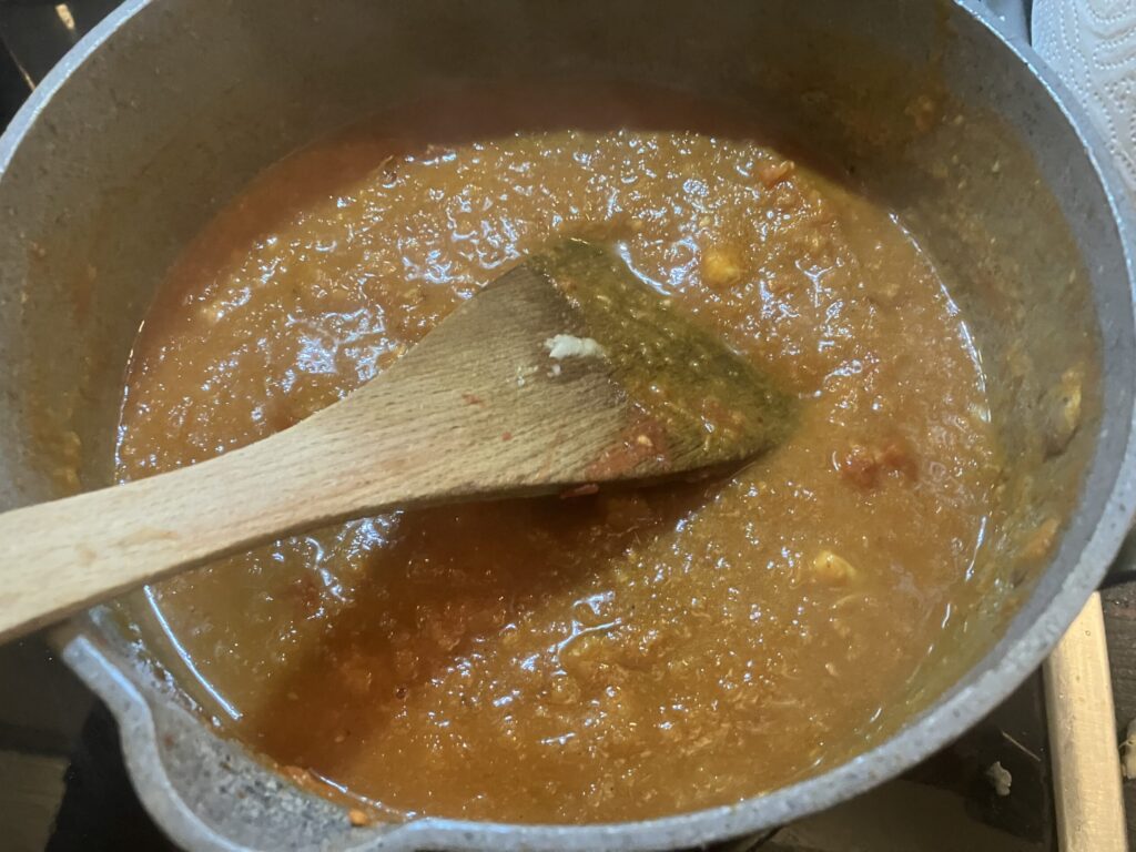 Falls es Euch subjektiv wieder zu dick wird, einfach noch mehr Wasser nachgießen. Das verdunstet halt. Auf mittlere Hitze reduzieren, wenn es einmal blubbernd gekocht hat.