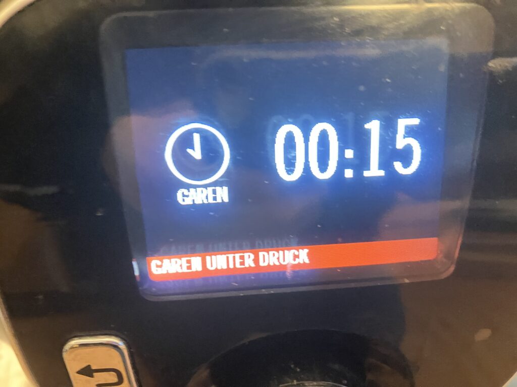 Deckel verschließen und Kochzeit 15 Minuten unter Druck einstellen