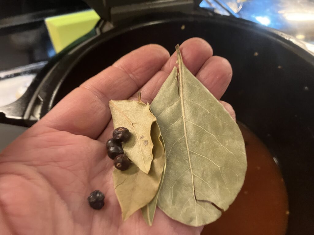 Wacholderbeeren und Lorbeerblätter