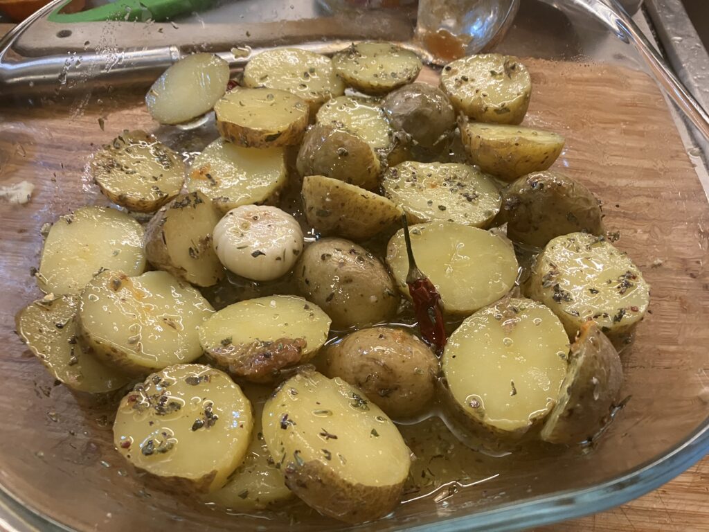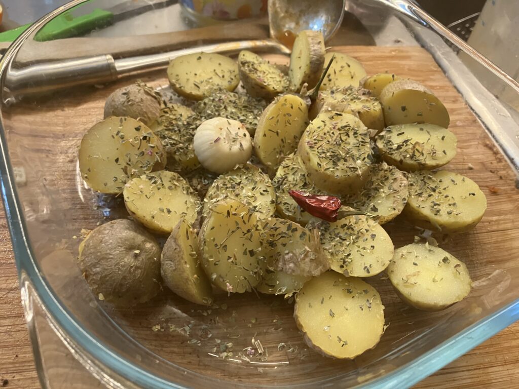 Die Kartoffeln schmecken durch die Gewürze, die Zitrone und das Olivenöl sehr mediterran.