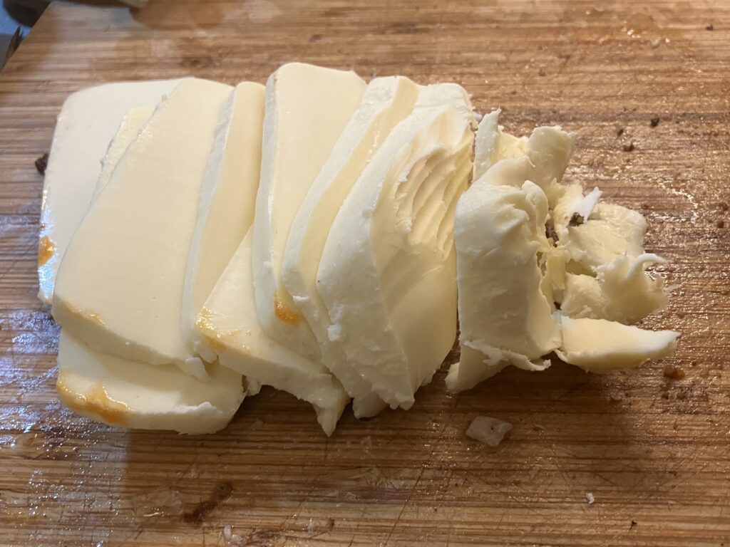 Mozzarella in Scheiben schneiden