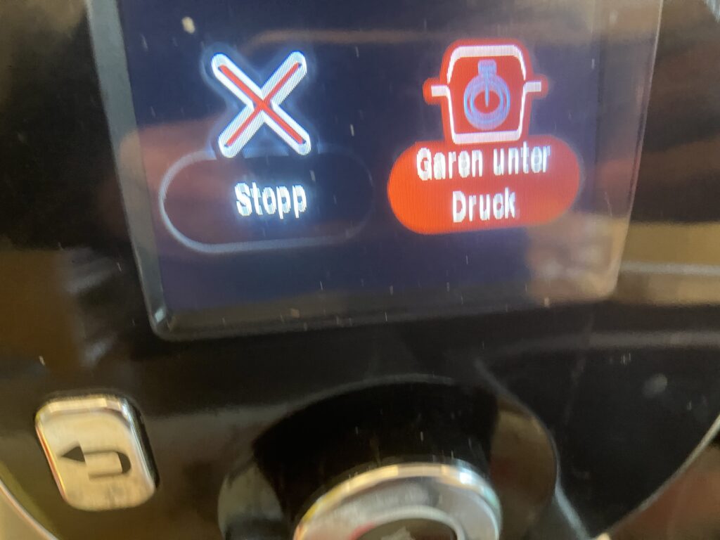 Die wenn man die nur für zwei Leute zubereiten würde, könnte man da sicherlich noch länger Zeit für das Anbraten verwenden. Bei der Menge die ich habe, würde das aber meinen Zeitvorteil reduzieren, dewegen nutze ich die Anbratfunktion jetzt erstmal, damit die Zutaten schon mal anwärmen und sich dann später der Druck aufbauen kann, wenn der Deckel geschlossen wird.