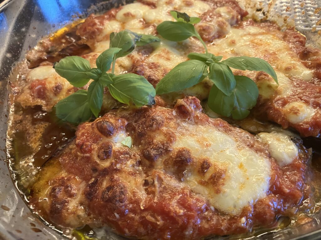 Ich habe auch Parmigiana für die Mutti gemacht, die meistens kein Fleisch essen will.