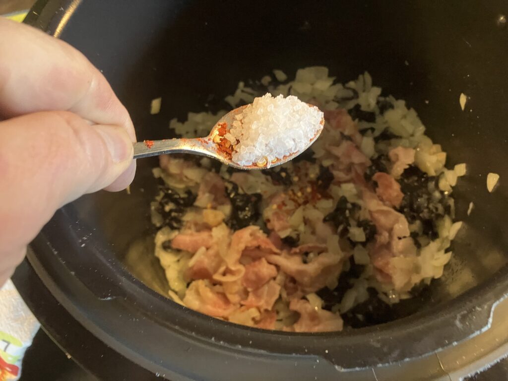 Salz. Was man davon braucht hängt immer von der verwendeten Brühe ab. Am besten am Ende nachalzen und hier an der Stelle nicht übertreiben